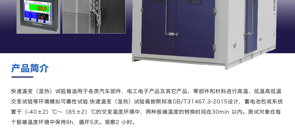 用途:快速溫變(濕熱)試驗箱適用于各類汽車部件,電工電子產(chǎn)品及其它產(chǎn)品、零部件和材料進(jìn)行高溫、低溫高低溫交變試驗等環(huán)境模擬可靠性試驗.快速溫變(濕熱)試驗箱按照標(biāo)準(zhǔn)GB/T31