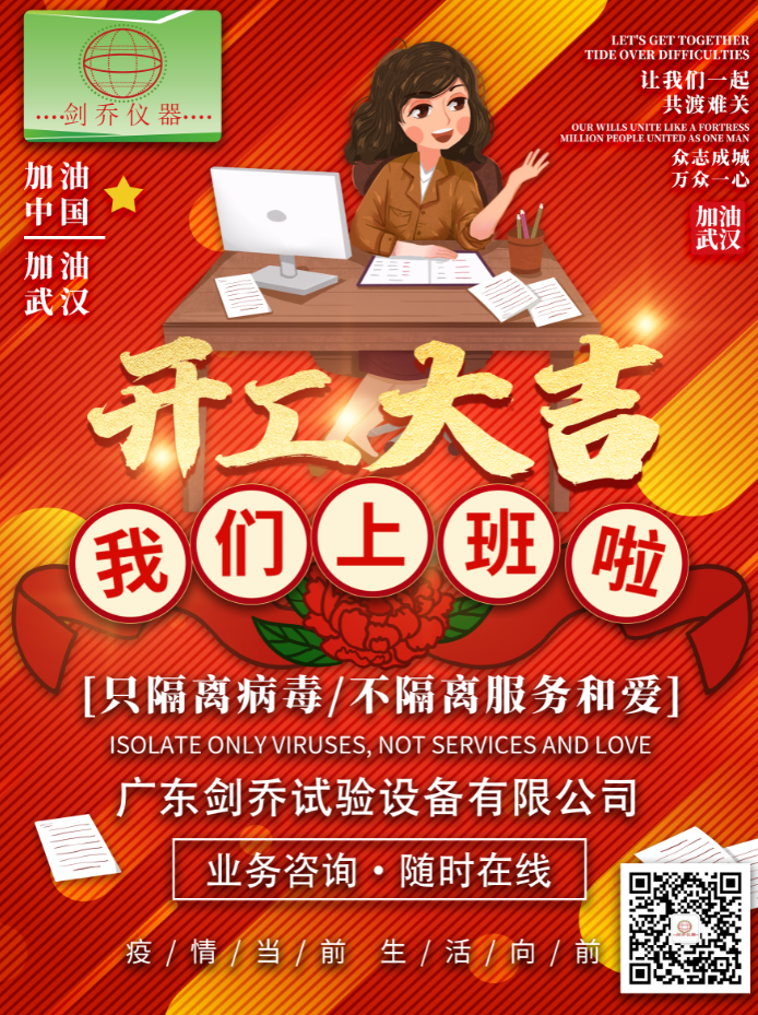 為加強(qiáng)新型冠狀病毒感染肺炎疫情防控工作,有效減少人員聚集,阻斷疫情傳播,更好保障職工生命安全和身體健康,按照黨中央、國務(wù)院防控工作部署,根據(jù)《中華人民共和國突發(fā)事件應(yīng)對(duì)法》《中華人民共和國傳染病防治法》和廣東省突發(fā)公共衛(wèi)生事件一級(jí)響應(yīng)機(jī)制的有關(guān)規(guī)定,劍喬儀器延長2020年春節(jié)假期,已于2月10日正式復(fù)工。