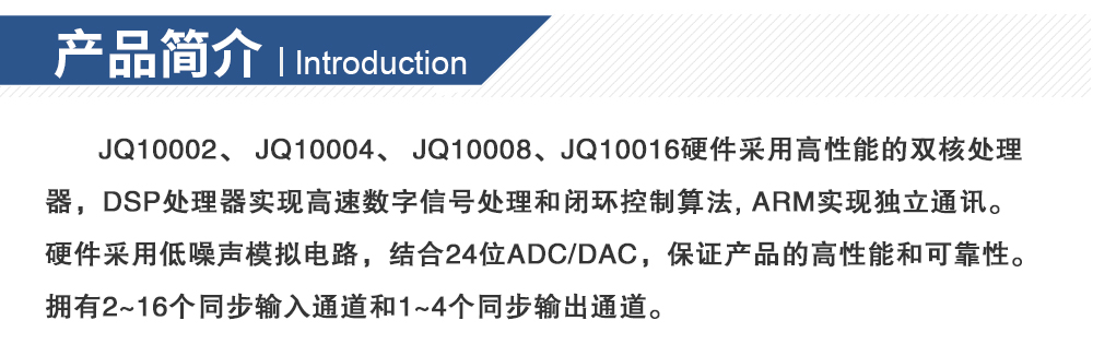 用途: JQ10002、 JQ10004、 JQ10008、JQ10016硬件采用高性能的雙核處理器,DSP處理器實(shí)現(xiàn)高速數(shù)字信號(hào)處理和閉環(huán)控制算法, ARM實(shí)現(xiàn)獨(dú)立通訊。