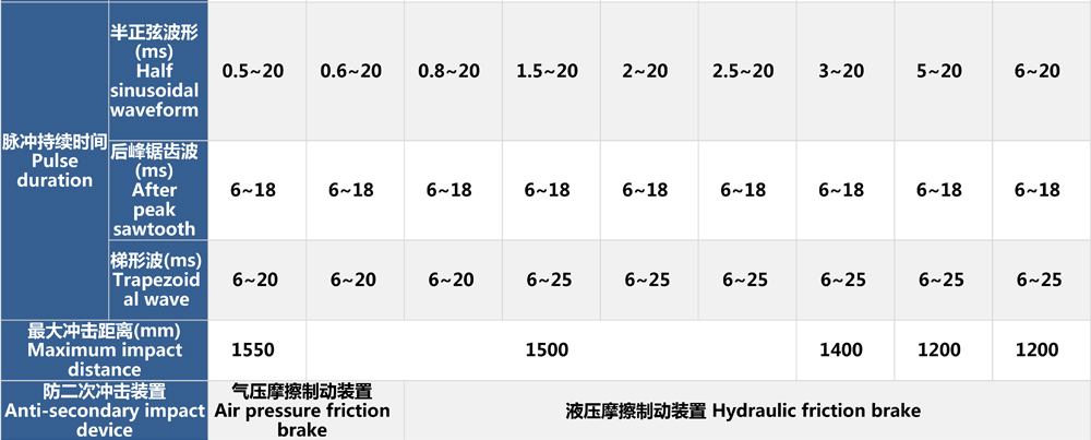 公司產(chǎn)品樣本中分別標(biāo)注出了各型號氣動(dòng)沖擊碰撞試驗(yàn)臺的空載和標(biāo)稱加載狀態(tài)下的速度變化量,用戶可根據(jù)自身試驗(yàn)指標(biāo)來選擇適合自身需求的沖擊臺。